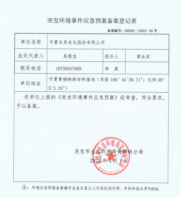 • 寧夏東吳農(nóng)化股份有限公司